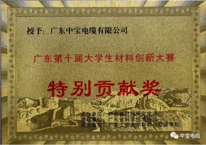 企業(yè)的發(fā)展離不開人才和創(chuàng)新,中寶電纜一直以來都非常支持創(chuàng)新人才的培養(yǎng),全面推動(dòng)大學(xué)生素質(zhì)教育工作進(jìn)程,大力支持科研教育事業(yè),積極履行企業(yè)的社會(huì)職責(zé),公司大力贊助廣東第十屆大學(xué)生材料創(chuàng)新大賽。